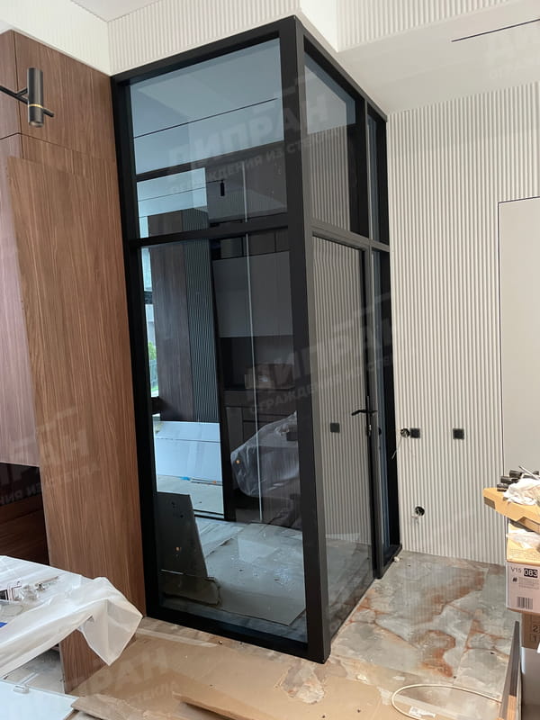 По желанию заказчика стеклянная часть перегородок может быть оклеена декоративной или противоосколочной пленкой